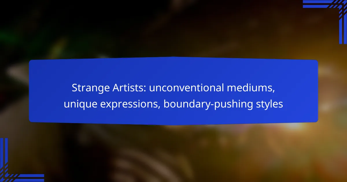 Strange artists are redefining the landscape of contemporary art by embracing unconventional mediums and innovative techniques. From mixed media installations to performance art, these creators challenge traditional boundaries and express their ideas in unique ways. Their boundary-pushing styles, including surrealism and conceptual art, invite viewers to engage with thought-provoking works that reflect diverse perspectives and emotions.