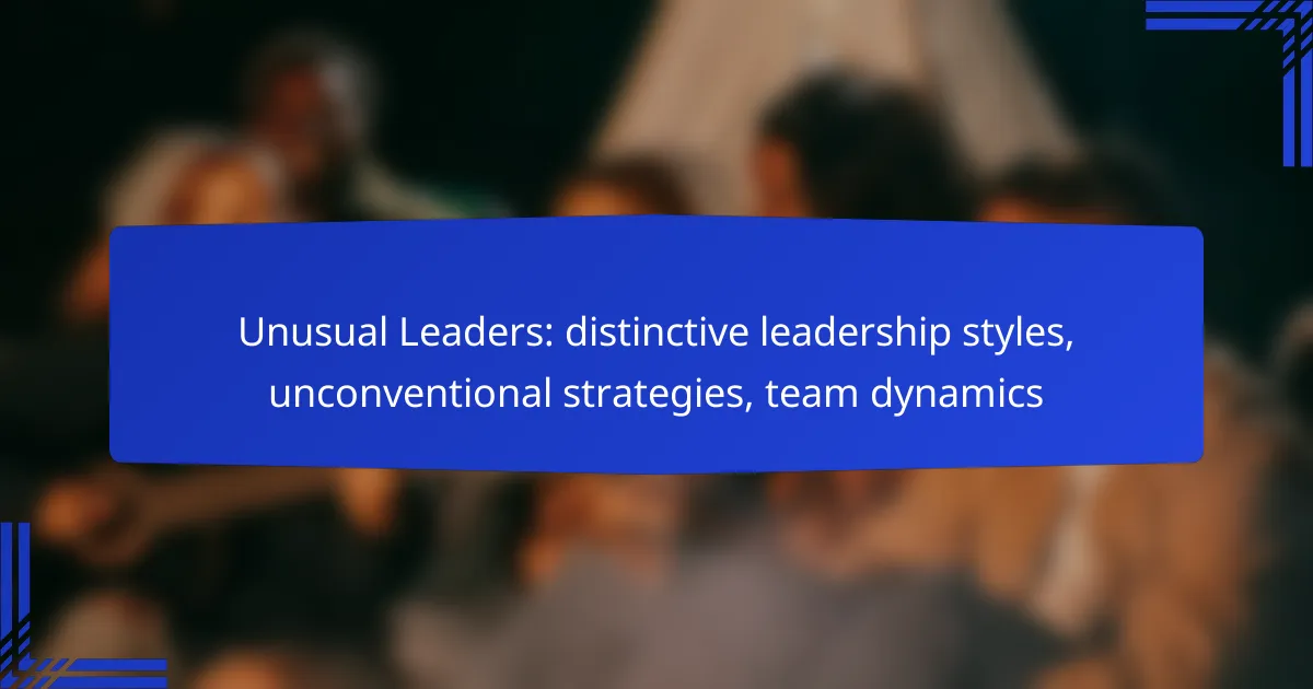 Unusual leaders often distinguish themselves through distinctive leadership styles and unconventional strategies that challenge traditional norms. By fostering unique team dynamics, these leaders create environments ripe for innovation and collaboration, ultimately driving enhanced performance and creativity within their organizations.